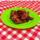 Spicy wing sauce and chicken cutlet covered with mozzarella cheese.