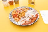 Breaded chicken and homemade pasta tossed in marinara sauce and covered with cheese.